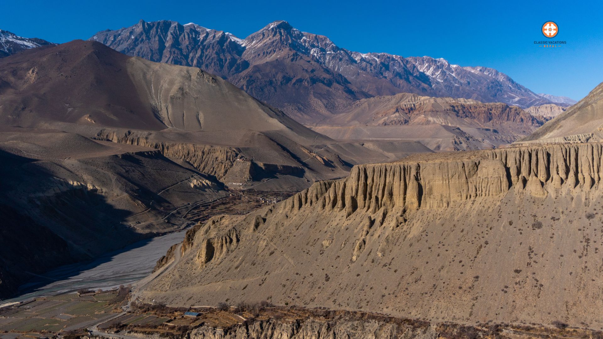 The second day of the drive and the fourth day of the adventurous journey begins from Pokhara in the early morning. Drive past Jomsom, the headquarter of Mustang, accompanied by the magnificent view of the Himalayas including Mt. Dhaulagiri, Mt. Annapurna, Mt. Machhapuchhre, and many more. An eight hours long drive will end up at Kagbeni, the gateway to Upper Mustang, also known as the desert of Nepal. Stay overnight.